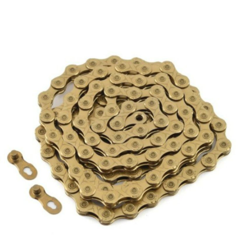 Cadena diseñada para sistemas de desviadores con 8 velocidades (Bicicletas de carreras, MTB, trekking, ruta, etc) de grosor estrecho, tecnología anti ruido y transición suave.