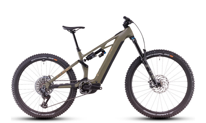 La Cube Stereo Hybrid ONE77 HPC TM 800 en acabado Dusty Olive ‘n’ Gold no es solo una bicicleta eléctrica: es una máquina de enduro pensada para los riders más exigentes, diseñada para conquistar los terrenos más complicados con total confianza y estilo.